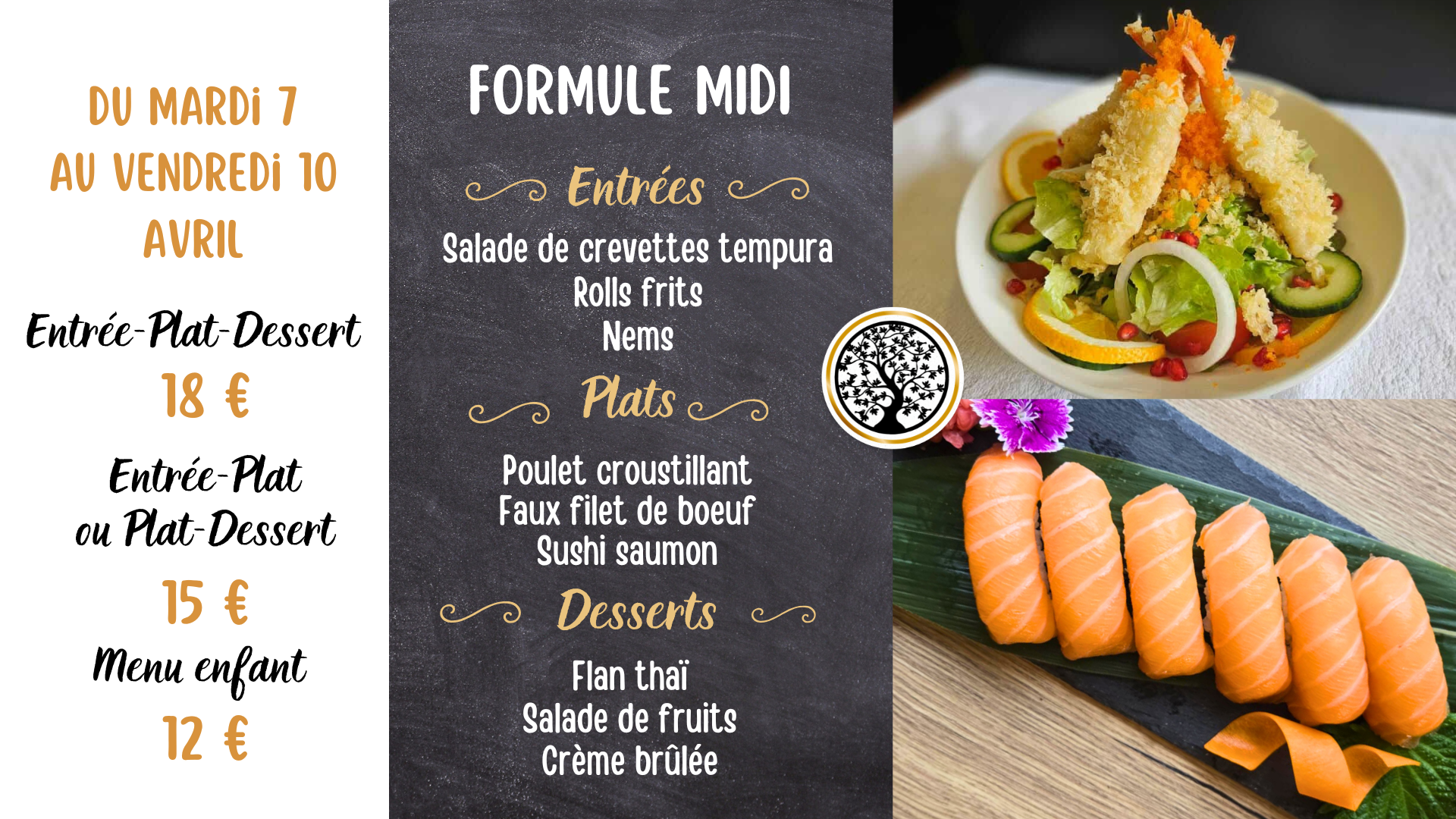 Entrée-Plat-Dessert à 18€
