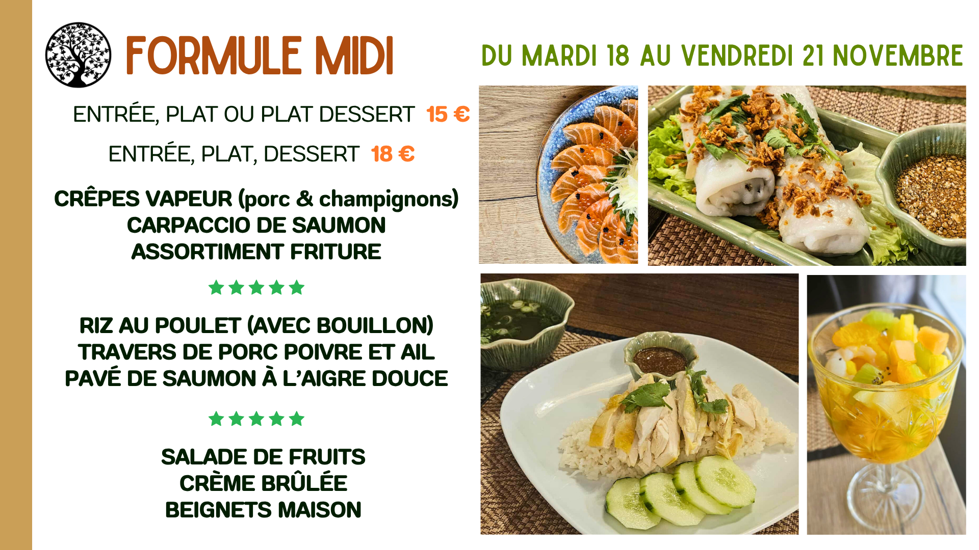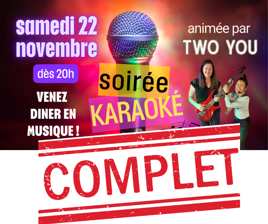 Restaurant complet pour la soirée du 22 novembre, merci à tous pour votre fidélité !