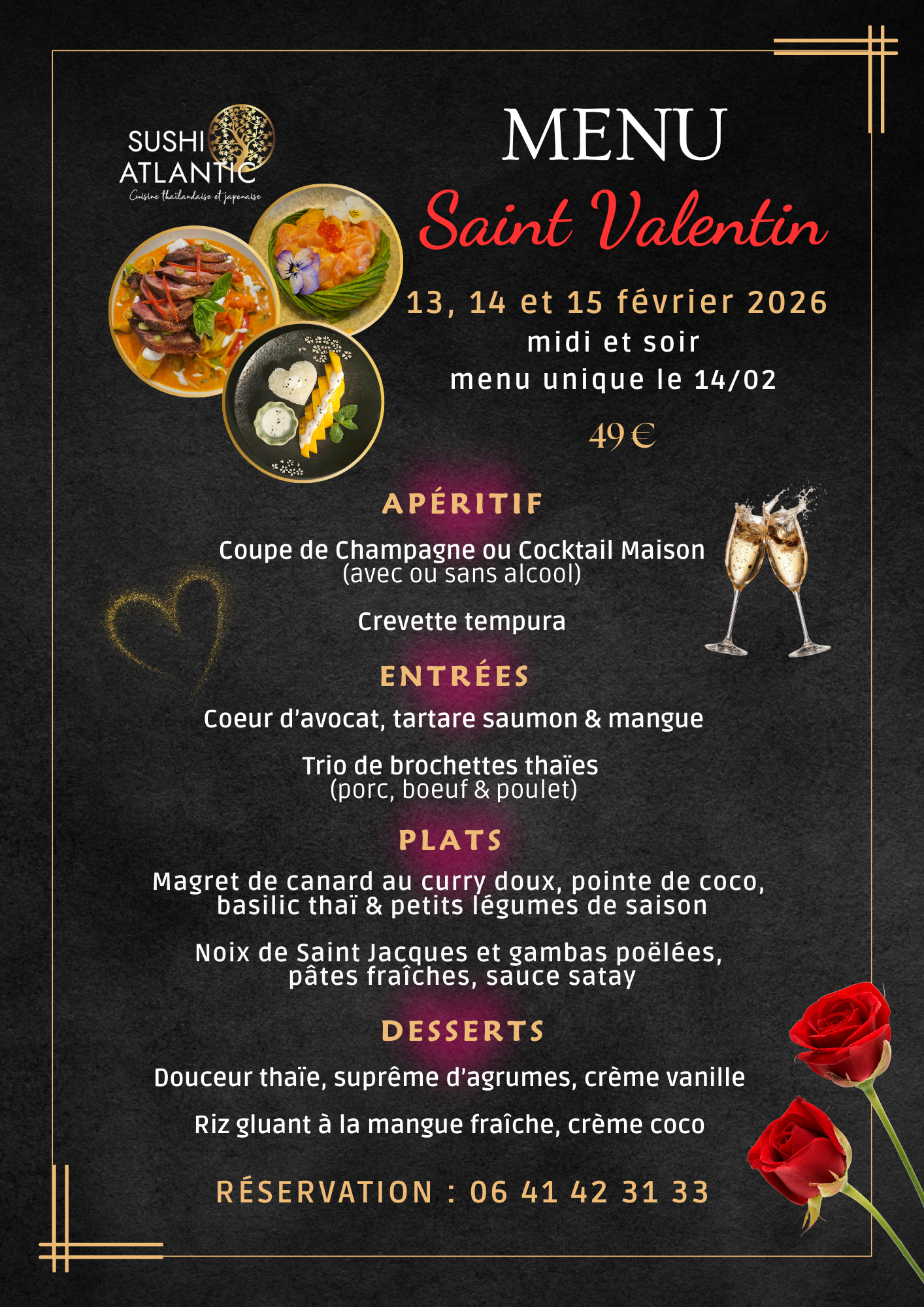 L'équipe de chefs cuisiniers de Sushi Atlantic vous a concocté un délicieux menu de fête à venir déguster les 13, 14 et 15 février.